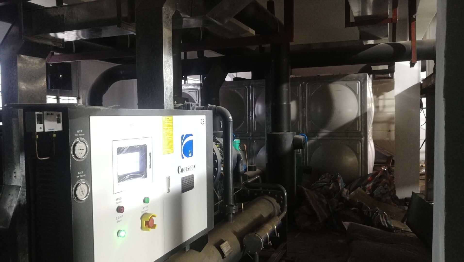 兩臺CSW-120型螺桿式冷水機 20T膨脹水箱 水泵一備一用