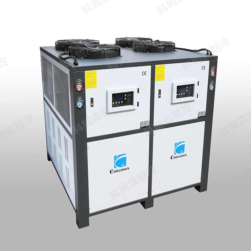 冰水機機組到位后,去掉滑動墊木,用氣泡水平儀校準水平,并用地腳螺栓將機組底腳固定在基